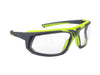 Rubber-tipped, ratcheting temples allow for easy adjustment, ensuring a secure and personalized fit. High-visibility green accents improve visibility in low-light conditions, adding an extra layer of jobsite safety.